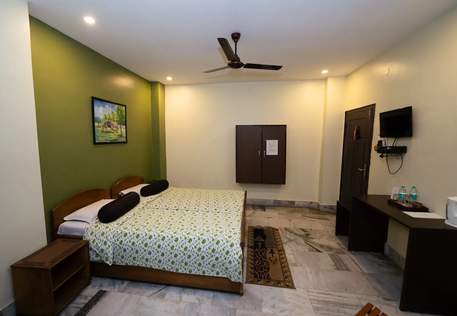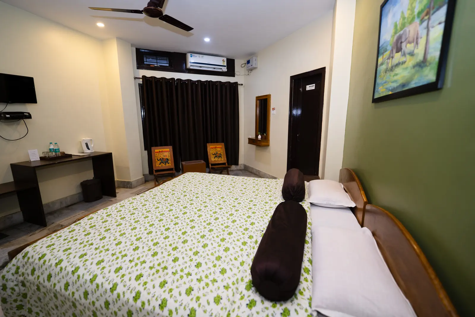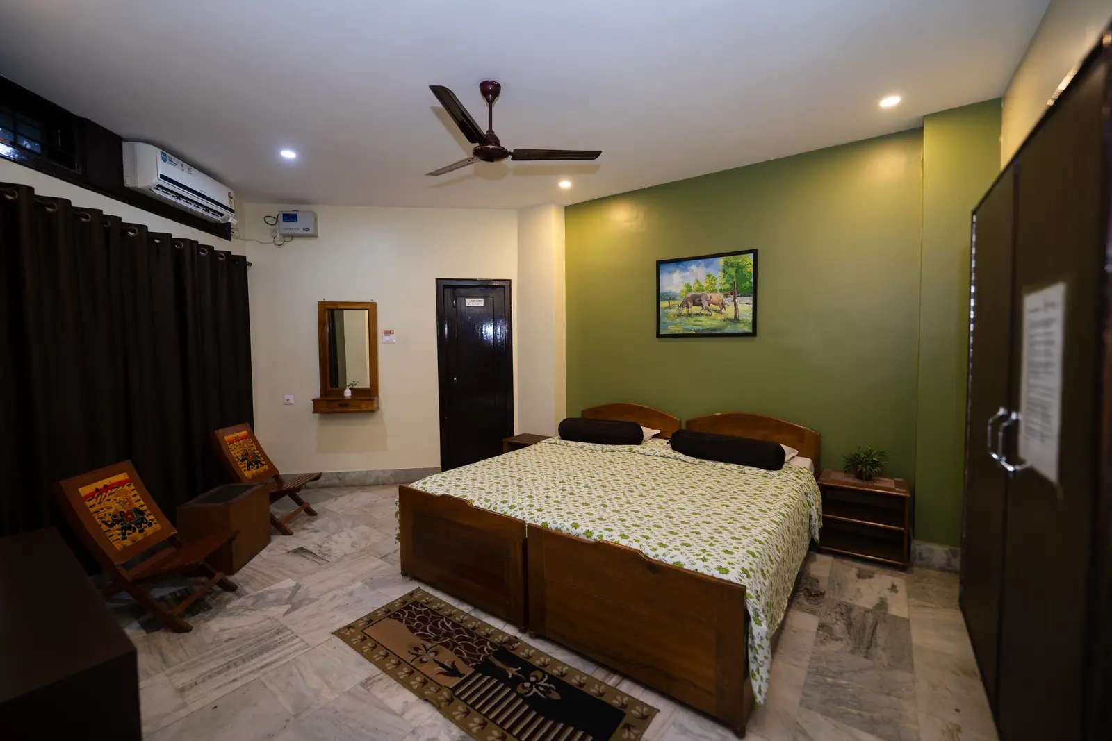 Double Deluxe room with a harmonious interior, thoughtfulness and functionality. The spacious room has a double bed, a work area and a seating area. Relax and enjoy your stay in a space designed to feel just like home. We Offer an ideal place to enjoy a refreshment or room service.